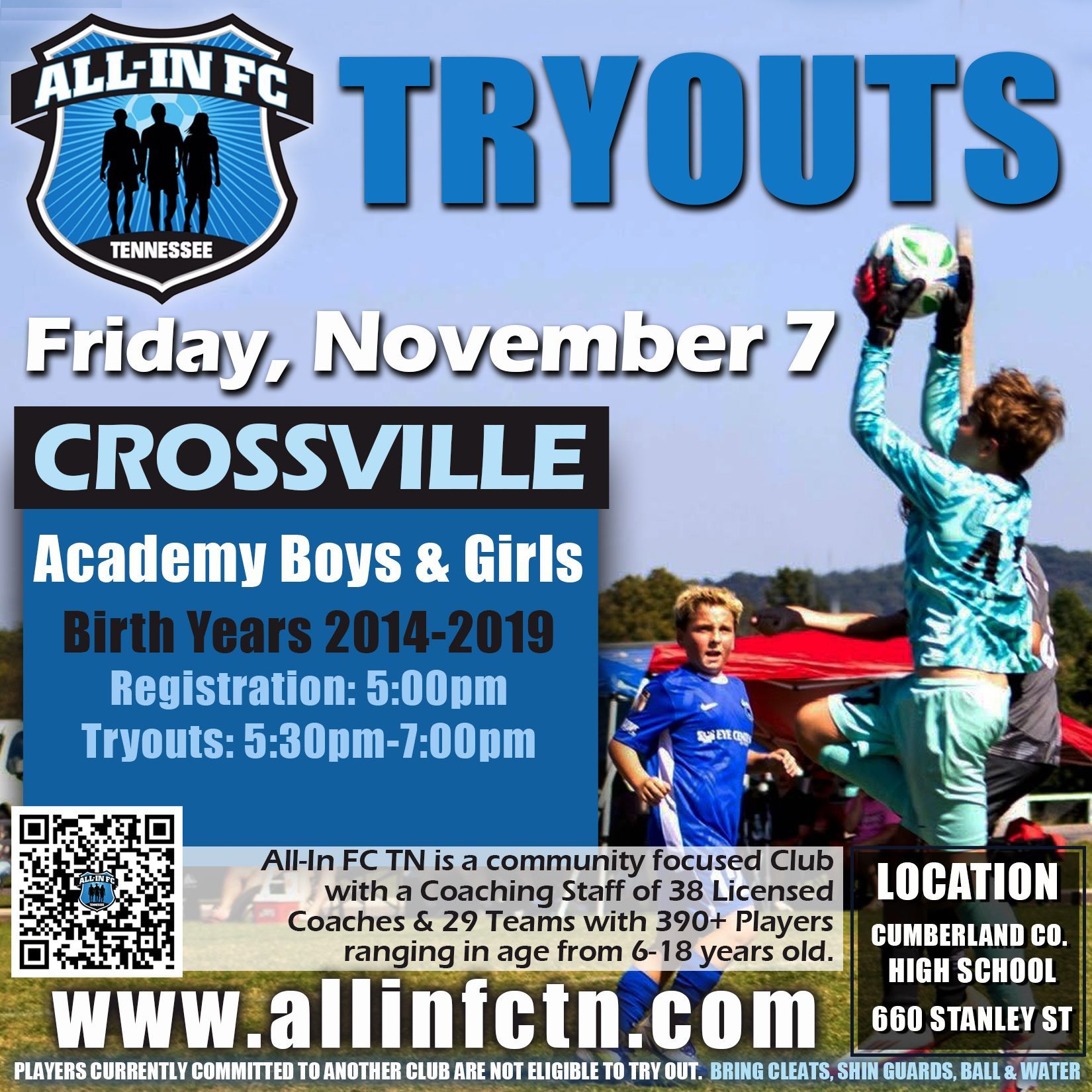 To register for tryouts for All-In FC TN for the 2025-2026 season,